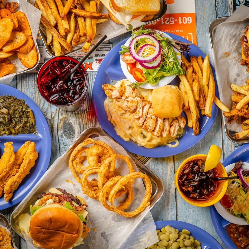 Our catering menu brings the heart of Southern cooking to your event with rich, flavorful entrees that celebrate regional favorites. From a build-your-own hamburger bar with all the fixings to a Cajun bar loaded with spicy, authentic Louisiana flavors, we offer something to satisfy every guest's craving. Whether you're hosting a casual gathering or a lively celebration, our menu is crafted to make your event unforgettable.